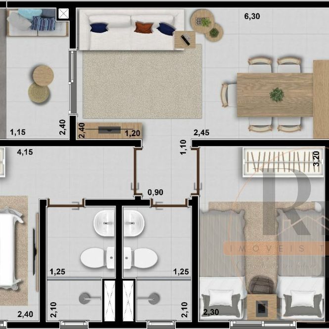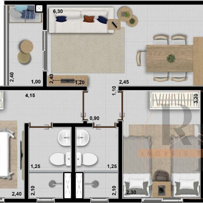 Sala de estar, jantar e cozinha em conceito aberto para maior integração dos espaços
