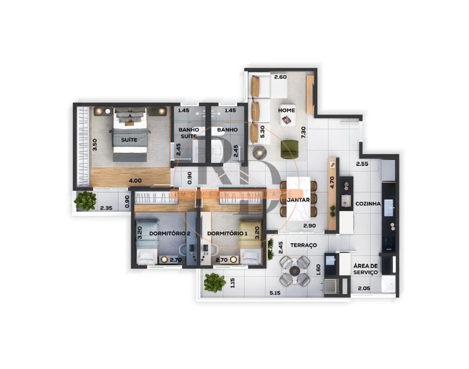 Destaques dos apartamentos – 105m²: