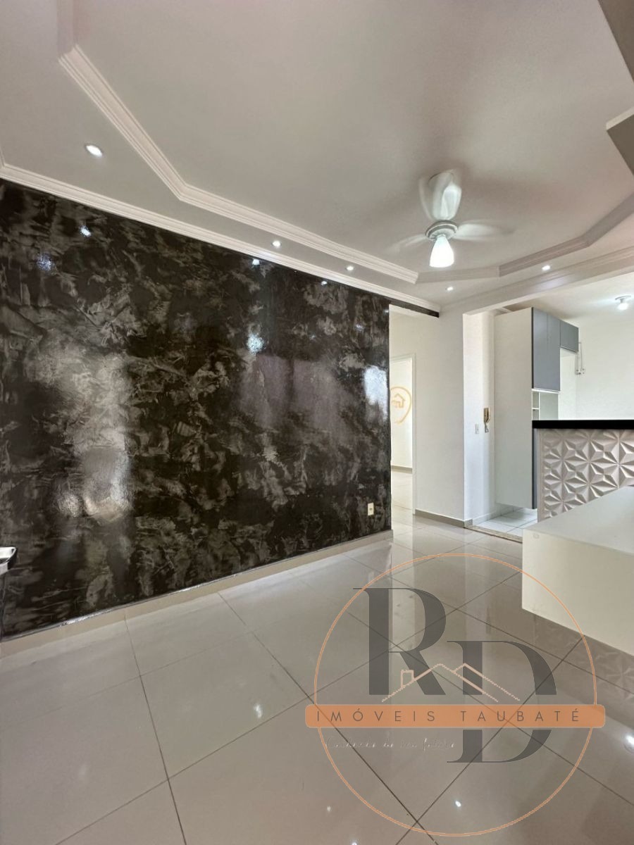 Não perca essa chance única de adquirir o apartamento dos seus sonhos! Localizado no bairro Residencial Sítio Santo Antônio em Taubaté, esse imóvel possui tudo o que você precisa: 2 dormitórios aconchegantes, sendo 1 quarto c/ ventilador de teto e persiana e 1 quarto s/ ventilador de teto e sem persiana, sala com teto rebaixado de gesso, luminárias, ventilador de teto e painel de televisão, cozinha com moveis planejado e fogão cooktop, imóvel todo em piso porcelanato, banheiro moderno e ainda uma garagem para o seu carro. Entre em contato conosco agora mesmo e agende uma visita. Venha conhecer o seu novo lar!!