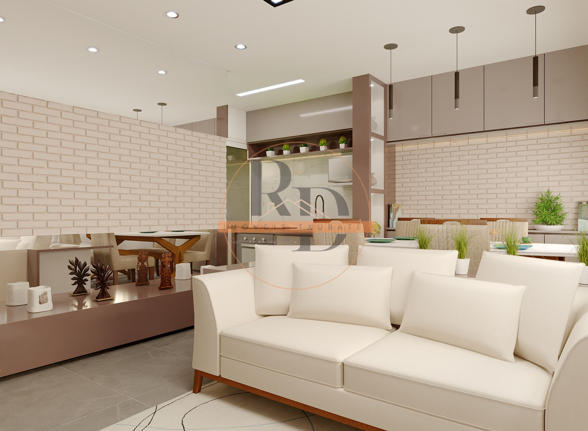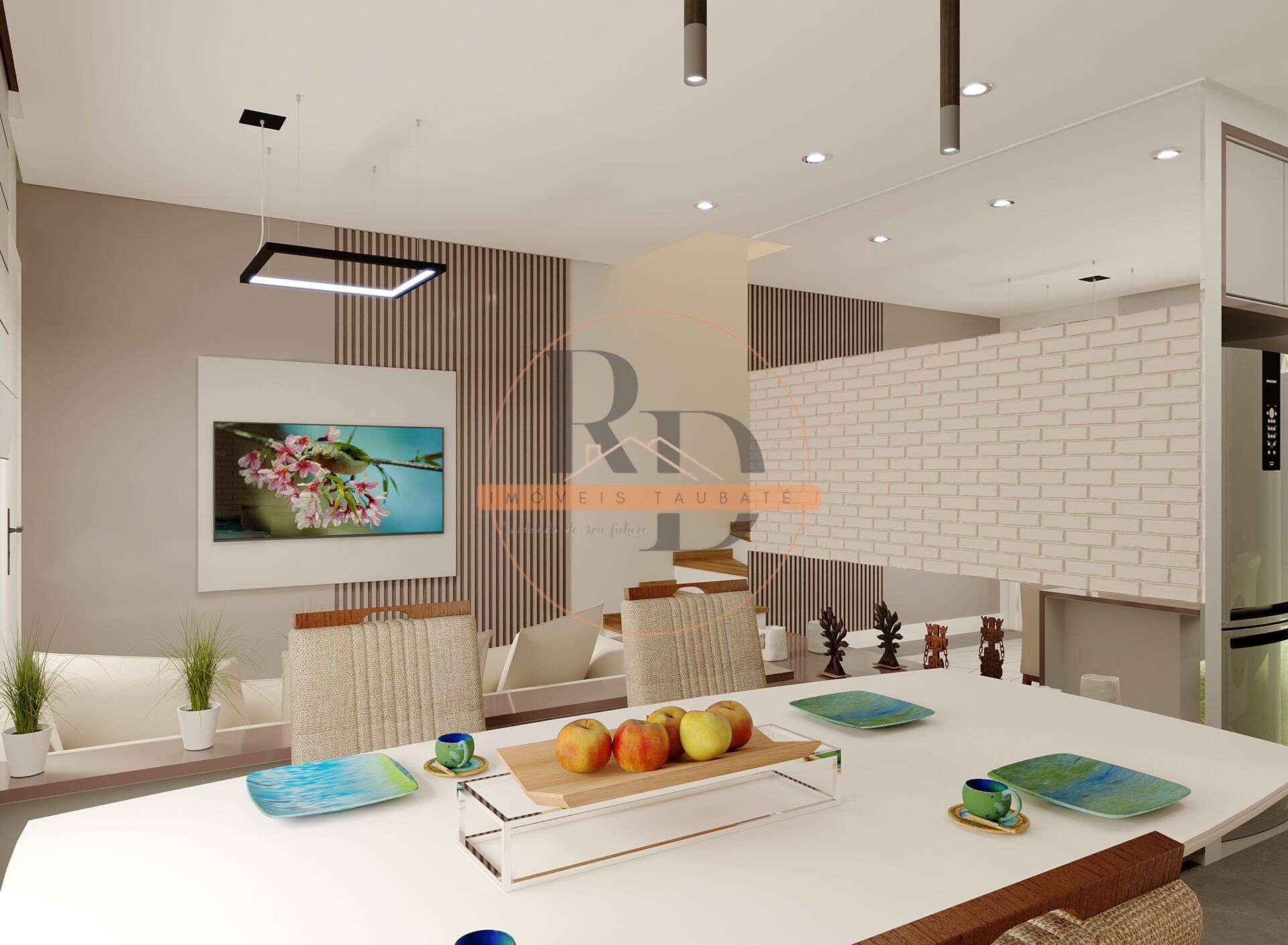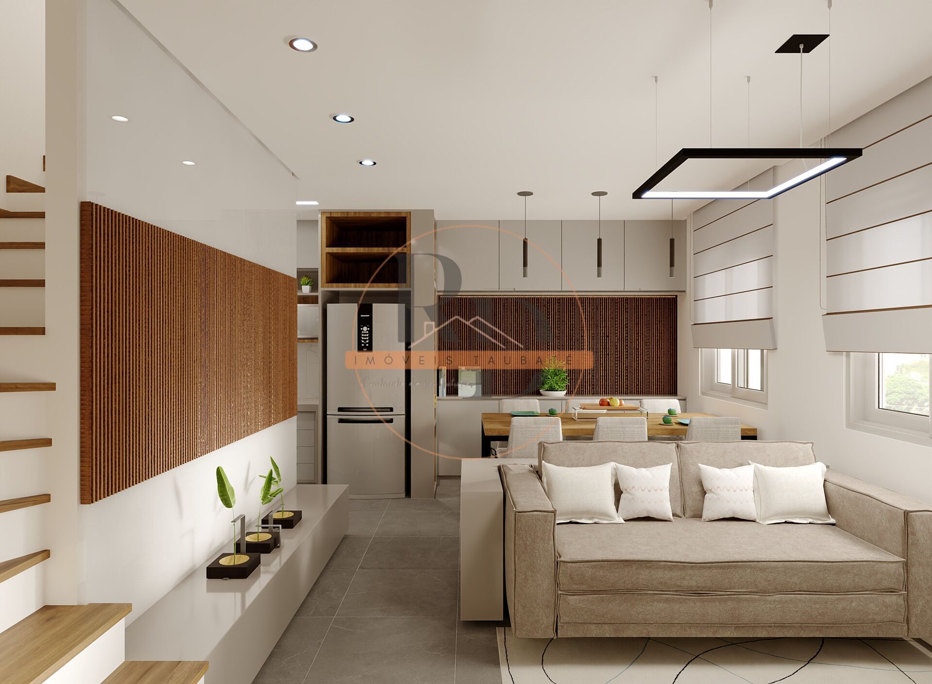 - Sala de estar integrada, proporcionando melhor aproveitamento dos espaços